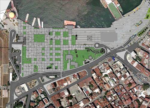 dolmuş duraklarının bulunduğu alan da yayalaştırılacak. Batı tarafta dolmuş ve