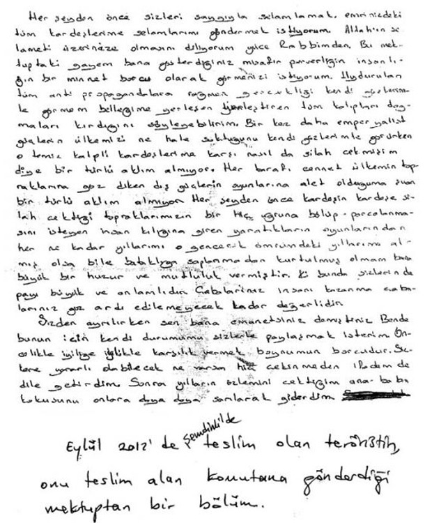Duygularını ise komutana yazdığı mektupla dile getirdi.