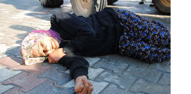 yaşlı kadın acı içinde sağlık ekiplerini beklerken,