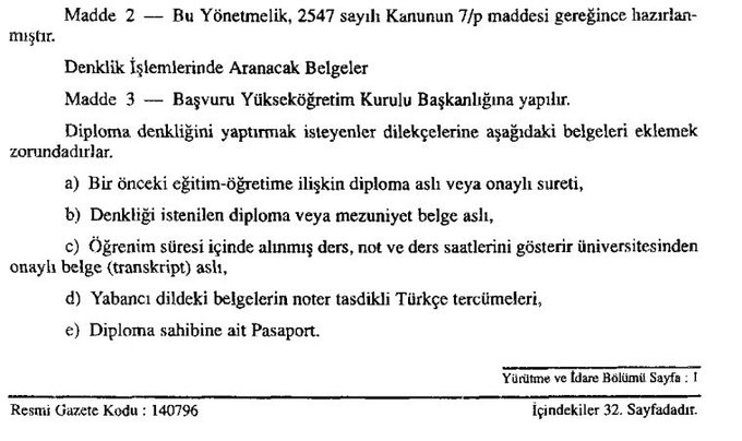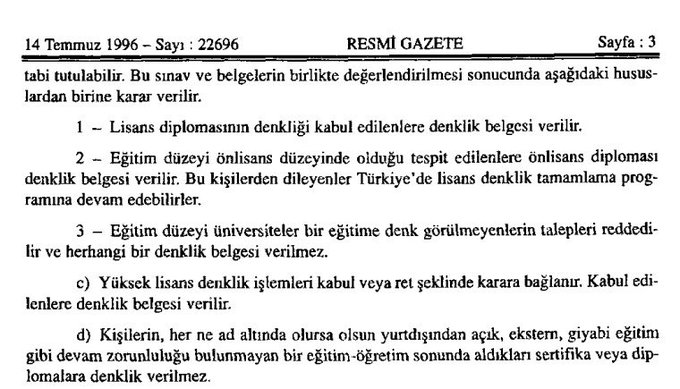 Denklik başvurusunda transkriptin aslı zorunludur! 14 Temmuz 1996 tarihli ve 22696 sayılı Resmi Gazete’de yayımlanan Yurtdışı Yükseköğretim Diplomaları Denklik Yönetmeliği’nin 3. maddesi (c) bendine göre, denklik başvurusu sırasında transkriptin aslı YÖK’e sunulmak zorundadır. Hal böyleyken, Hakan Fidan’ın transkript bilgilerinin açıklanması, lisans eğitiminde kaç kredi tamamladığı ve hangi dersleri aldığının kamuoyuyla paylaşması neden bu kadar zor anlayamıyoruz.