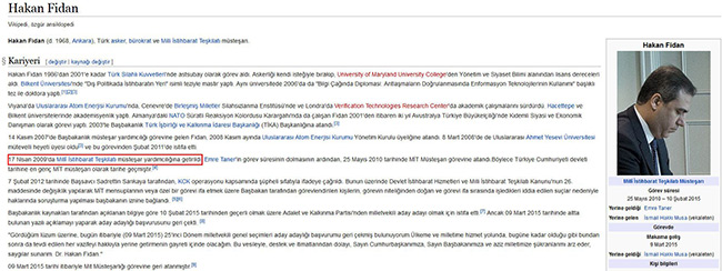 Tartışmalar TBMM’de de devam ederken, Fidan’ın MİT’teki göreve başlama tarihinin internetteki birçok sitede değiştirildiği ortaya çıktı. İnternetin en geniş kaynak sitesi olan Wikipedia.org başta olmak üzere ünlü kişilerin biyografilerine yer veren bir çok sitede de Fidan’ın 17 Nisan 2010 olan ‘MİT’te göreve başlama tarihi’nin ’17 Nisan 2009’ olarak değiştiği belirlendi. Ayrıca Fidan’ın Başbakanlık Müsteşar Yardımcılığı’ndan MİT Müsteşar Yardımcılığı’na atandığına ilişkin internetteki haberlerin büyük çoğunluğuna da ulaşılamıyor.