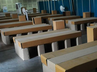 Hindistan'ın Haryana eyaletinin Gurugram şehrinde bulunan bir kız yurdu, koronavirüs (Covid-19) bakım merkezine dönüştürüldü. Bakım merkezine karton yataklar kuruldu.