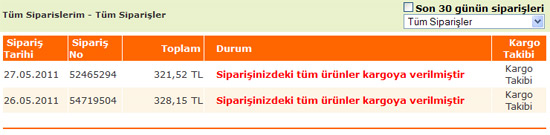 Üyelik girişi yaptığında, 04.06.2011 tarihinde gönderilen ürünün iade alındığı ve