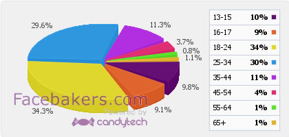 Buna göre Facebook'taki Türk kullanıcılar arasında şu anda en büyük yoğunluk %34 ile 18-24 yaş aralığında. Bu yaş segmentini %30 ile 25-34 yaş aralığındaki kullanıcılar takip ediyor.