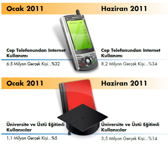 Türkiye Internet kullanıcısı profilinde en dikkat çeken değişiklikler, alışverişten sorumlu kitlenin yüzdesinde, üniversite ve üstü eğitimli kullanıcıların sayısında, cep telefonundan Internet kullanımında ve online alışverişteki artış.