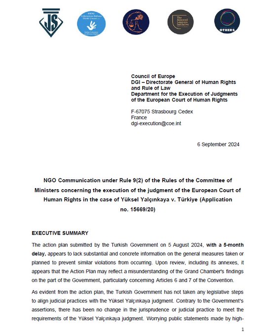 Solidarity with OTHERS, Avrupa'da faaliyet gösteren 4 uluslararası insan hakları kuruluşuyla birlikte, Yalçınkaya kararıyla ilgili Türk Hükümeti tarafından hazırlanan Eylem Planına ilişkin karşı bildirimde bulunduklarını açıkladı.