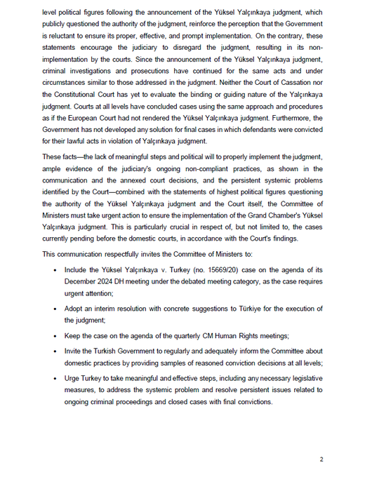 Söz konusu kararın uygulanmasına yönelik Türkiye’nin kayıtsızlığı karşısında ve hak ihlallerinin de devam ettiğini vurgulayarak Avrupa Konseyi Bakanlar Komitesi’ni bir an önce harekete geçmeye ve adım atmaya davet ettik.