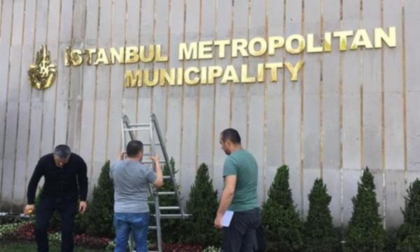 Açıklamanın ardından Saraçhane’deki İBB binası önünde dün belediye çalışanlarının tabelalardan harf ölçüleri aldığı görüldü. Çalışanlar defterlerine T. C. ve ölçülerini yazdı. Çalışanlar T. C. ibaresinin önümüzdeki günlerde İstanbul Büyükşehir Belediyesi yazısı başına ekleneceğini söyledi.