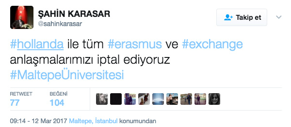 Türkiye-Hollanda ilişkileri tarihin en büyük diplomatik krizlerinden birini yaşıyor. Dışişleri Bakanı Mevlüt Çavuşoğlu'nun, Hollanda'ya girişinin engellenmesi sonrası Aile Bakanı Fatma Betül Sayan Kaya'nın da Rotterdam'daki Başkonsolosluk binasına girmesine izin verilmedi. Bakan Kaya'nın bazı korumalarının gözaltına alındığını bildirilirken Reuters haber ajansı Bakan Kaya'nın, "Persona non grata" (istenmeyen kişi) ilan edilerek sınır dışı edildiğini aktardı. 03.15'te Bakan Kaya, polis eskortuyla Rotterdam'dan ayrıldı. Bakan Kaya attığı Twitter mesajında Nijmegen sınırından Almanya'ya götürüldüğünü belirtti. Saat 05.09'da Bakan Kaya'nın konvoyu Almanya'ya girdi. Bakan Kaya, Almanya’nın Köln-Bonn havaalanından kalkan özel uçakla İstanbul'a vardı.