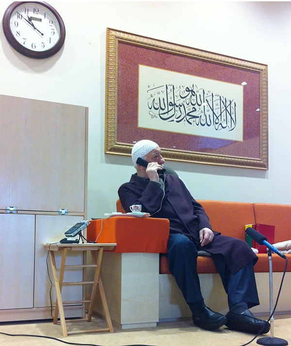 Sitede bir de, Muhterem Hocaefendi'nin iki ders arasında, telefonla konuşurken çekilen fotoğrafı paylaşıldı.