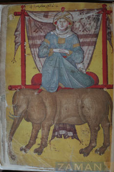 Fatih'in şehzadelik döneminde dillere destan bir düğünle evlendiği Dulkadiroğlu Süleyman Bey'in kızı Sitti Mükrime Hatun'un resmi. Venedik Marciana Kütüphanesi'ndeki Greek Codex (