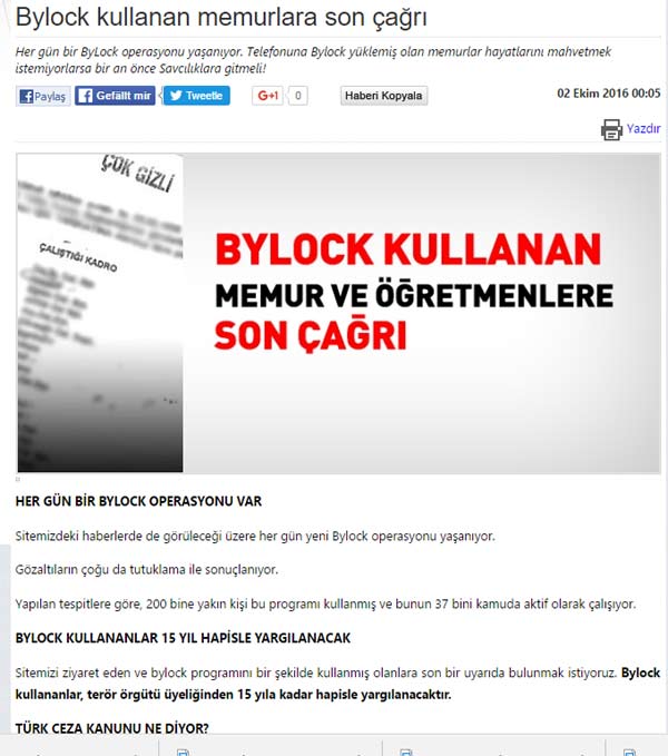 Mahkemenin kararından sonra hukuki bir delil olmaktan çıkan Bylock kullanıcıları için yalan yanlış bilgileri gündeme sokanlar memur ve öğretmenleri paniğe sevk etmeye çalışıyor.