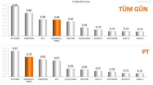 TNS ölçümlerine göre haber kanallarının 1 Mart tarihli izlenme oranları...
