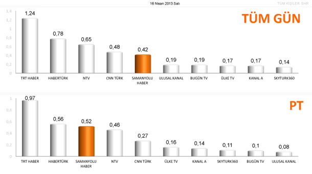 TNS ölçümlerine göre haber kanallarının 16 Nisan tarihli izlenme oranları...