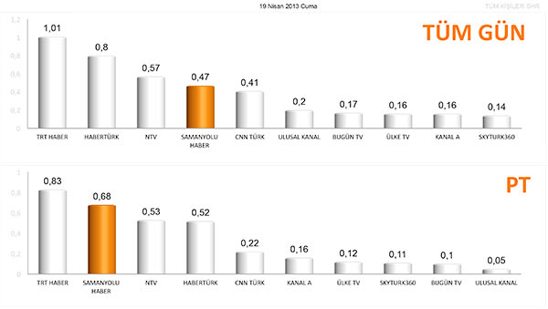 TNS ölçümlerine göre haber kanallarının 19 Nisan tarihli izlenme oranları...