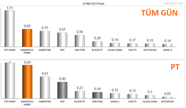 TNS ölçümlerine göre haber kanallarının 24 Mart tarihli izlenme oranları...