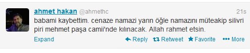 Ahmet Hakan babasının vefatını Twitter'dan duyurdu