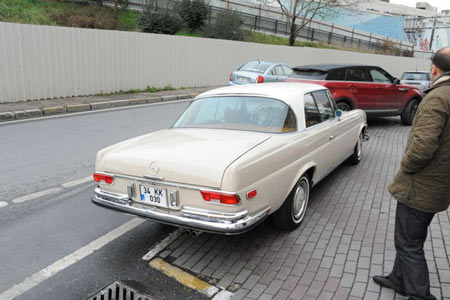 Cem Yılmaz'ın tek kapı Mercedes 280 Sl model otomobili önceki gün Etiler'de bulunan bir oto galerinin önünde görüntülendi.