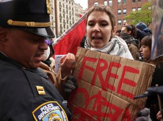 Sosyal medyadaki görüntülerde de rektörün talebi üzerine kampüse gelen NYPD Başkan Yardımcısı Kaz Daughtry ve beraberindeki polislerin kampüse girerek oturma eylemini engellediği ve karşı çıkanları gözaltına almakla tehdit ettiği görülüyor.