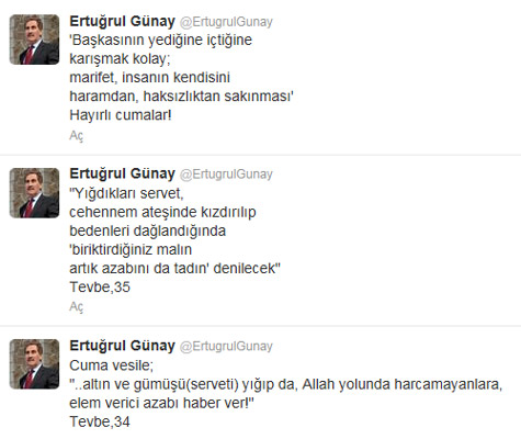 Günay, Cuma tweet'lerinde şu ifadelere yer verdi: