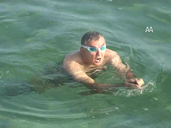 denize girerek yaklaşık 45 dakika yüzdü.