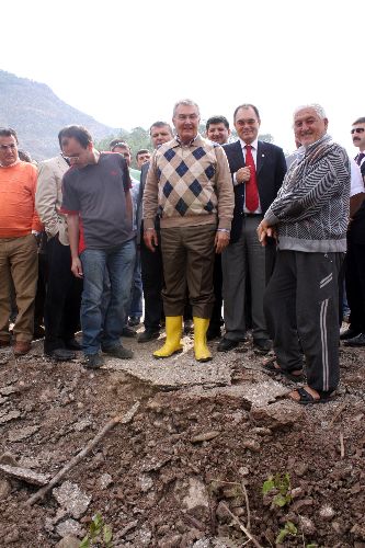 Akaydın ve CHP Antalya milletvekilleriyle birlikte geçen çarşamba günü yaşanan selden zarar gören Beykonak Beldesi ve Beşikçi köyünü ziyaretinde, Kumluca Kaymakamı