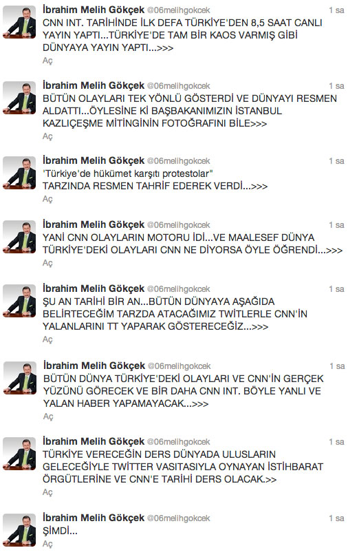 Gezi Parkı olaylarında Türkiye'yi adeta 3. Dünya ülkesiymiş gibi göstererek, bütün dünyaya bu amaç doğrultusunda görüntü ve fotoğraflar servis eden CNN International, Ankara Büyükşehir Belediye Başkanı Melih Gökçek tarafından eleştiri bombardımanına tutuldu.