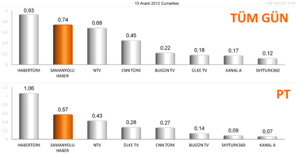 TNS ölçümlerine göre haber kanallarının 15 Aralık tarihli izlenme oranları...