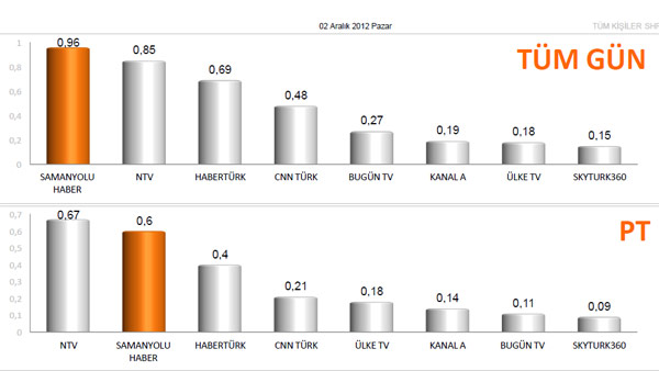 TNS ölçümlerine göre haber kanallarının 2 Aralık tarihli izlenme oranları...