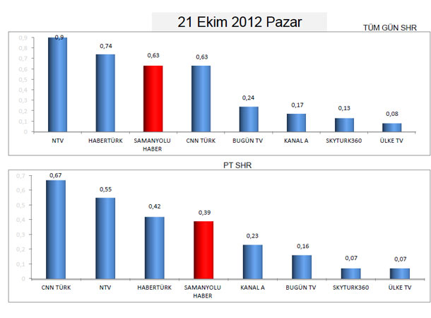 TNS ölçümlerine göre haber kanallarının 21 Ekim tarihli reyting ve sharingleri...