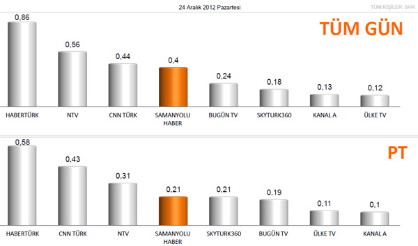TNS ölçümlerine göre haber kanallarının 24 Aralık tarihli izlenme oranları...