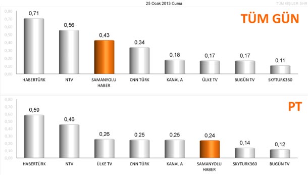 TNS ölçümlerine göre haber kanallarının 25 Ocak tarihli izlenme oranları...