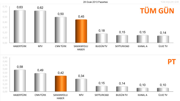 TNS ölçümlerine göre haber kanallarının 28 Ocak tarihli izlenme oranları...