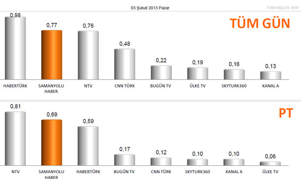 TNS ölçümlerine göre haber kanallarının 3 Şubat tarihli izlenme oranları...