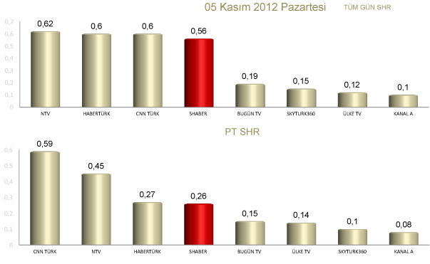 TNS ölçümlerine göre haber kanallarının 5 Kasım tarihli reyting ve sharingleri...