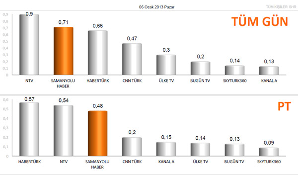 TNS ölçümlerine göre haber kanallarının 6 Ocak tarihli izlenme oranları...