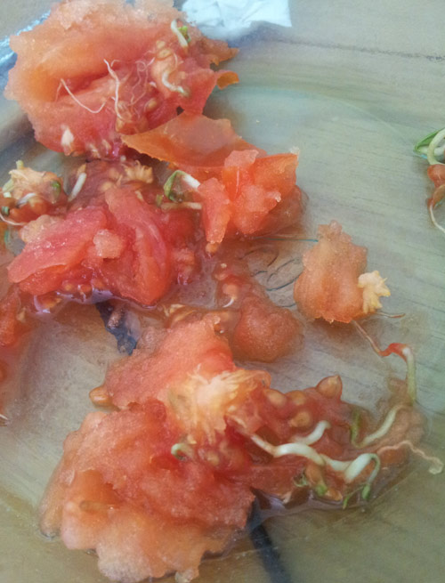 Ünal kilosunu 1.5 liraya satın aldığı domatesi eve getirdi. Bu gün yemek yapmak üzere eşinin domatesleri kestiğini söyleyen Ünal, kestikleri bir domatesin içinde filizlerin çıktığını söyledi.