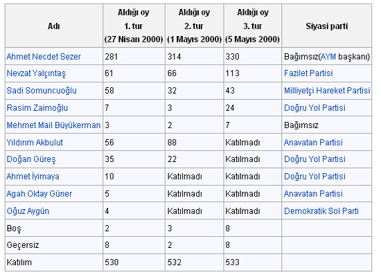aday ulaşamamıştır. Sezer cumhurbaşkanlığı görevini 16