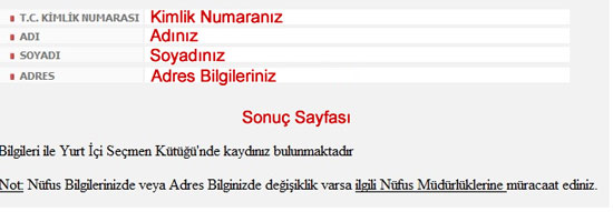 Daha sonra gelen sayfada seçmen bilgilerimizi resimdeki gibi görmemiz gerekir.