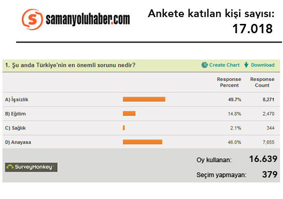 Samanyoluhaber.com, "Türkiye'nin en önemli sorununu"nu okuyucuların görüşüne sundu. 17.018 kişi Türkiye'nin en önemli sorununun ne olduğunu