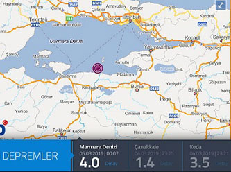 Marmara Denizi iki hafta içinde ikinci kez sallandı. 5 Mart Salı gece yarısında Türkiye saati ile 00:07'de merkezi üssü Marmara Denizi olan 4.0 büyüklüğünde bir deprem meydana geldi.