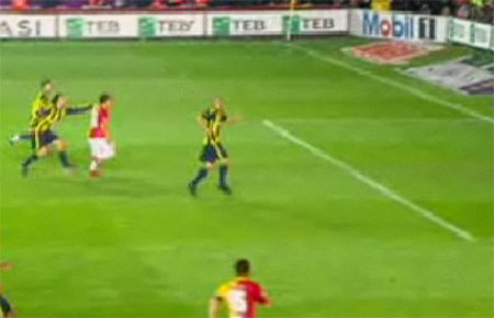 Pozisyon sonrasında sarı-kırmızılı oyuncular hakeme