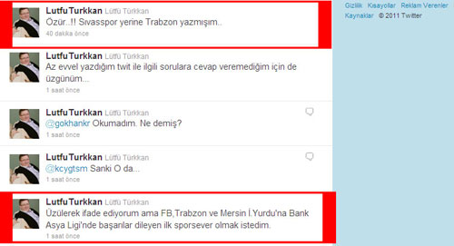 Twitter hesabını ve yazdığı iddiaları doğrulatmak adına kendisine telefonla ulaşmaya çalıştığımız Lütfü Türkkan, MHP'li yetkiller aracılığıyla ilettiği mesajında; "Twitter hesabı bana aittir, yazdıklarım gayet açık, konuyla ilgili gerekli açıklamalar oldukça yine Twitter'da iletmeye devam edeceğim" dedi. dha.com.tr/Seval BUDAK