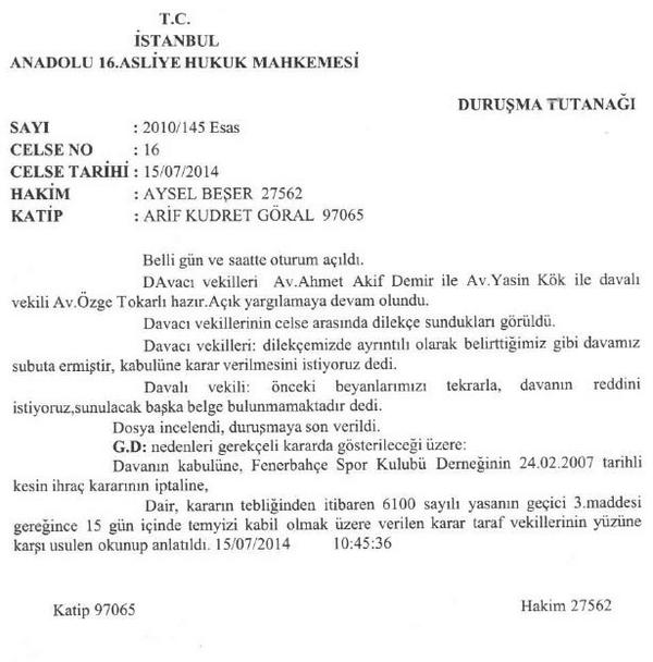 Mahkeme, Fenerbahçe'nin eski yöneticisi Sadettin Saran hakkındaki ihraç kararını iptal etti.
