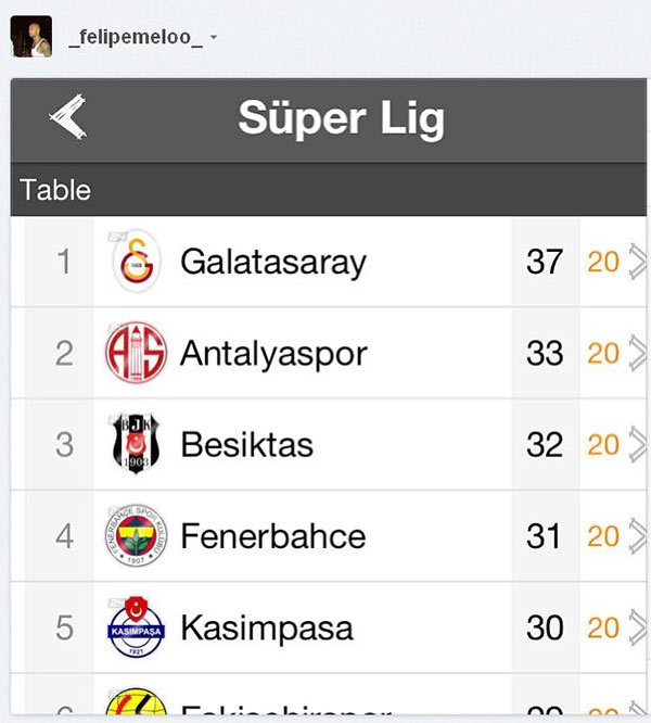 Kararın açıklamasının ardından Melo, 'Lider' şeklinde tweet attı ve Süper Lig puan durumunun yer aldığı bir fotoğraf paylaştı.