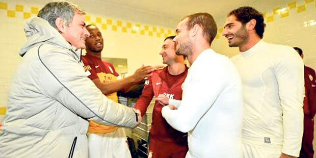 Portekizli hoca, eski talebeleri Didier Drogba, Wesley Sneijder ve Hamit Altıntop ile G.Saray'ın soyunma odasında bir araya gelip maç öncesinde kısa süre sohbet ederek hasret gidermişti.