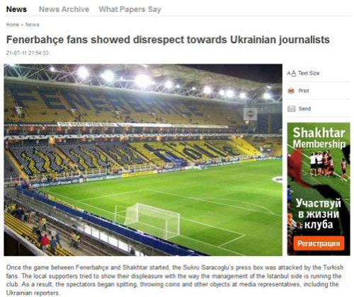 Shakhtar Donetsk kulübü resmi internet sitesinden yaptığı açıklamada, Türk taraftarların basın bölgesine saldırdıklarını,