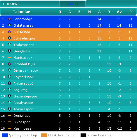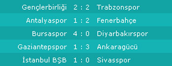 akşam yapılan maçlardan sonra oluşan puan tablosu şöyle: