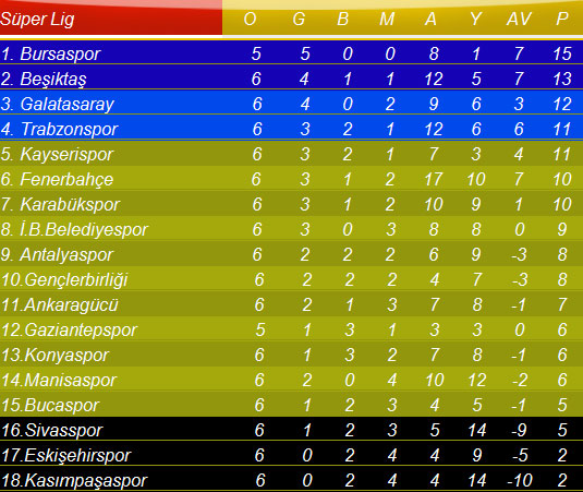 Ligde 6. hafta maçlarında alınan sonuçlardan sonra