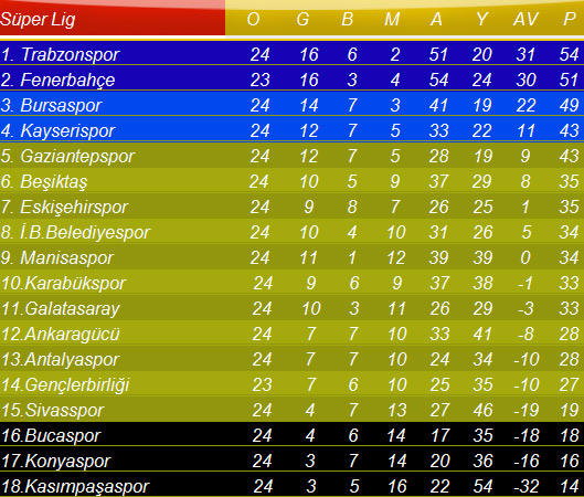 Süper Lig'in 24. haftasında oynanan maçlarda alınan sonuçlar, kalan maçların programı, son